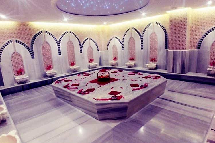 Düğün öncesinde cildin temizlenmesi ve yenilenmesi için bakıma ihtiyaç duyar. Avrasya Hamam olarak sunduğumuz profesyonel kese ve köpük masajının yanı sıra sauna, jakuzi, buhar odası gibi hizmetlerimizden de yararlanabilirsiniz. Hamamın iyileştirici etkileri ile cildiniz toksinlerden arınır ve kendinizi hafif, rahatlamış hissedersiniz. Huzur ve dinginlik veren ortamlarda size sunduğumuz hizmet, zihninize de dinlenme ve rahatlama fırsatı sunar. Terapi niteliğinde olan gelin hamamı, sizi hem pırıl pırıl bir cilde kavuşturur hem de düğüne hazırlık sürecindeki zihinsel yorgunluğu atarak canlanmanızı sağlar.